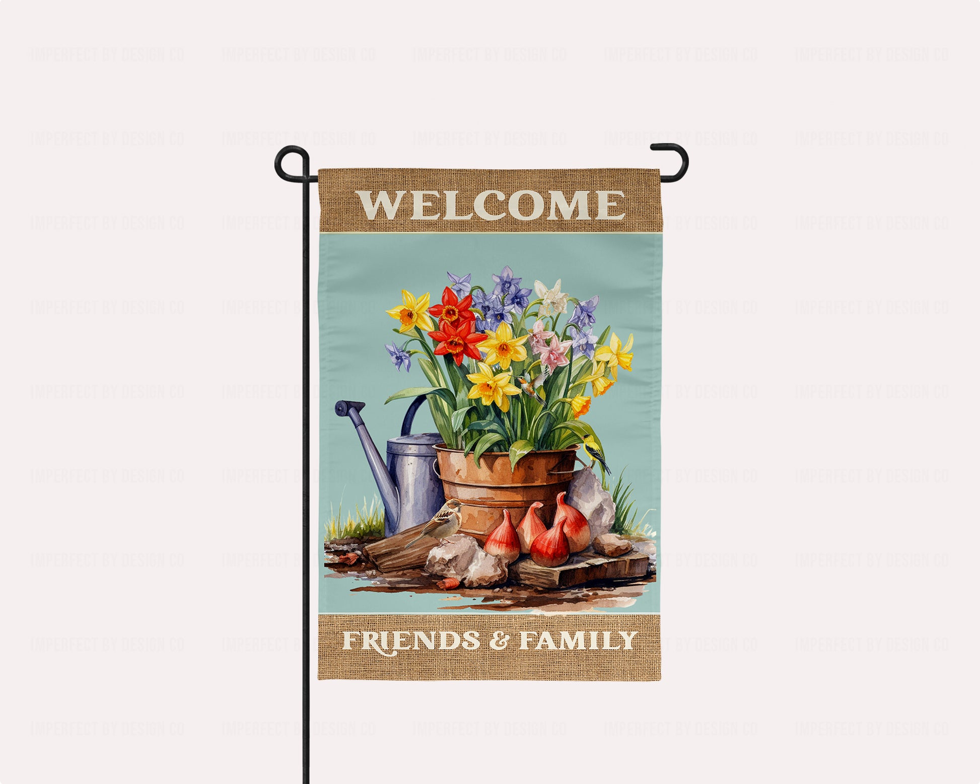 Garden Flag With Flowers And Birds Still Life, Welcome Friends and Family