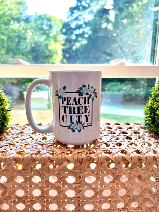 15oz Ceramic Coffee Mug - Golf Cart & Script "Peachtree City" Design | Smiles for Miles | Georgia Souvenir