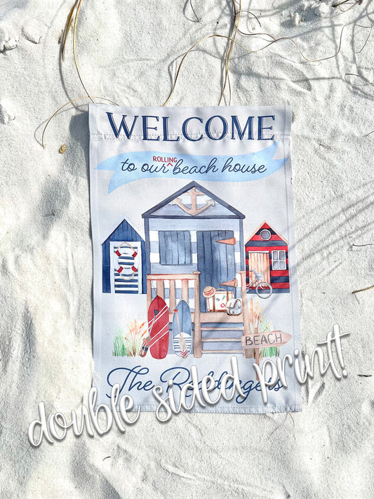 Personalized Coastal Garden Flag, Welcome to our beach house With Your Last Name