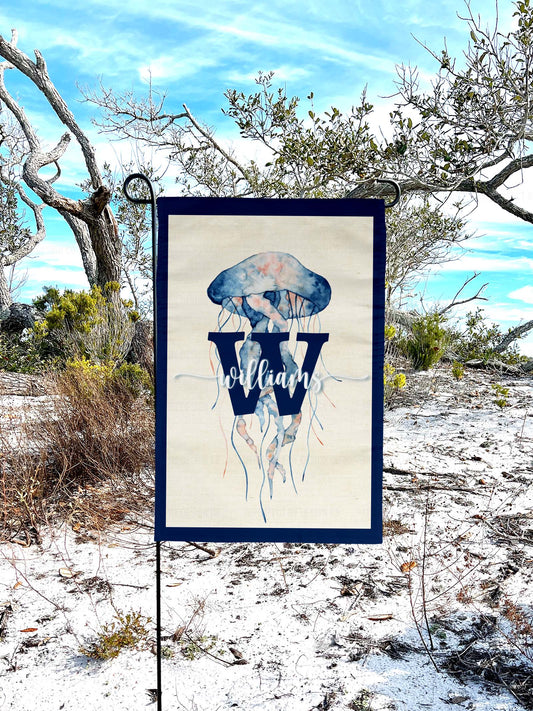 Personalized Coastal Garden Flag Featuring A Jellyfish With Last Name