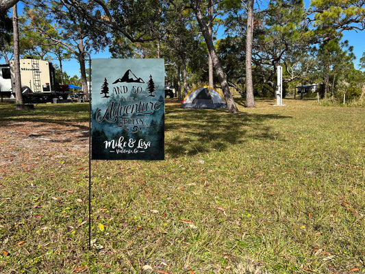 Personalized Garden Flag Featuring Mountain Scene, And so the adventure begins