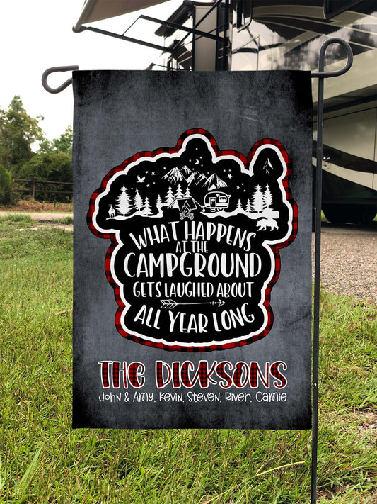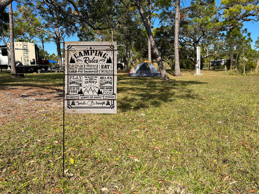 Garden Flag Featuring Light-Hearted Camping Rules Text