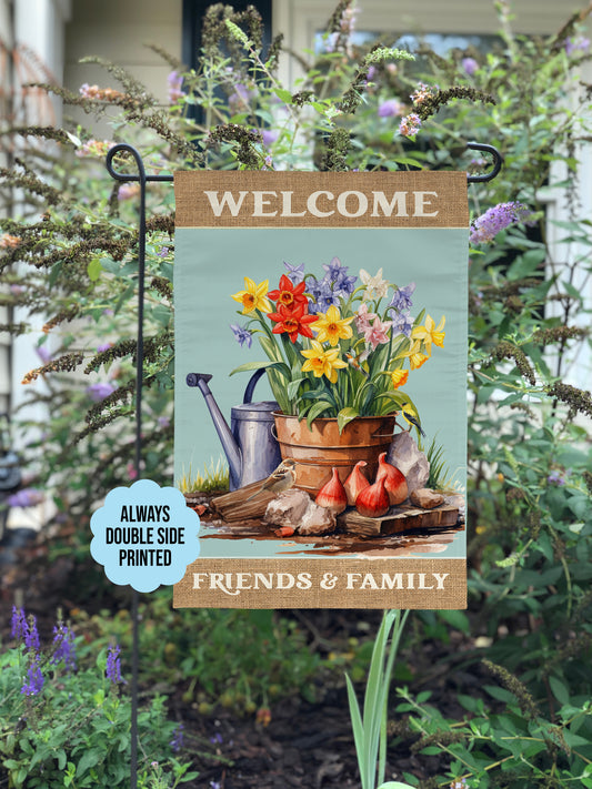 Garden Flag With Flowers And Birds Still Life, Welcome Friends and Family