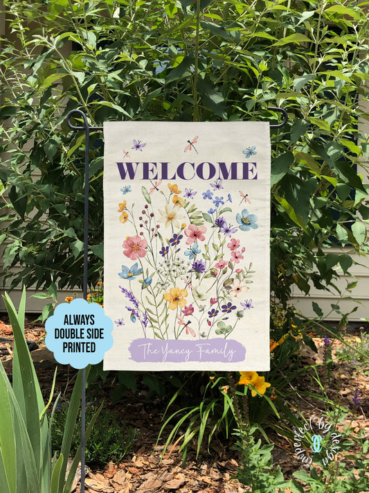Personalized Garden Flag With Wildflowers, WELCOME