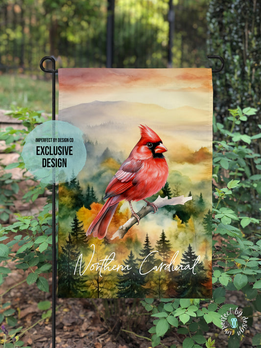 Garden Flag Featuring Male Northern Cardinal In Fall Forest Scene