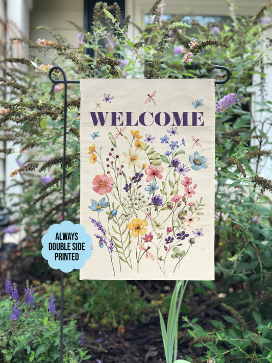 Garden Flag With Wildflowers, WELCOME