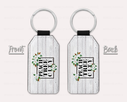 Peachtree City Keychain With Magnolia Blossoms