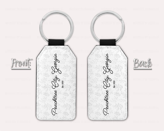 Peachtree City Keychain Whimsical Leaves Pattern and Script Font