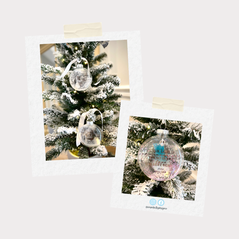 ![Personalized Wedding Christmas Ornament in Clear Glass – A 4.5 x 4-inch clear glass ornament with the text "Our First Christmas as Mr. & Mrs. [Last Name]" in elegant pewter foil, featuring a silver-tipped white feather and faux snow inside.](http://imperfectbydesignco.com/cdn/shop/files/IMG_9358.jpg?v=1728328558&width=1445)