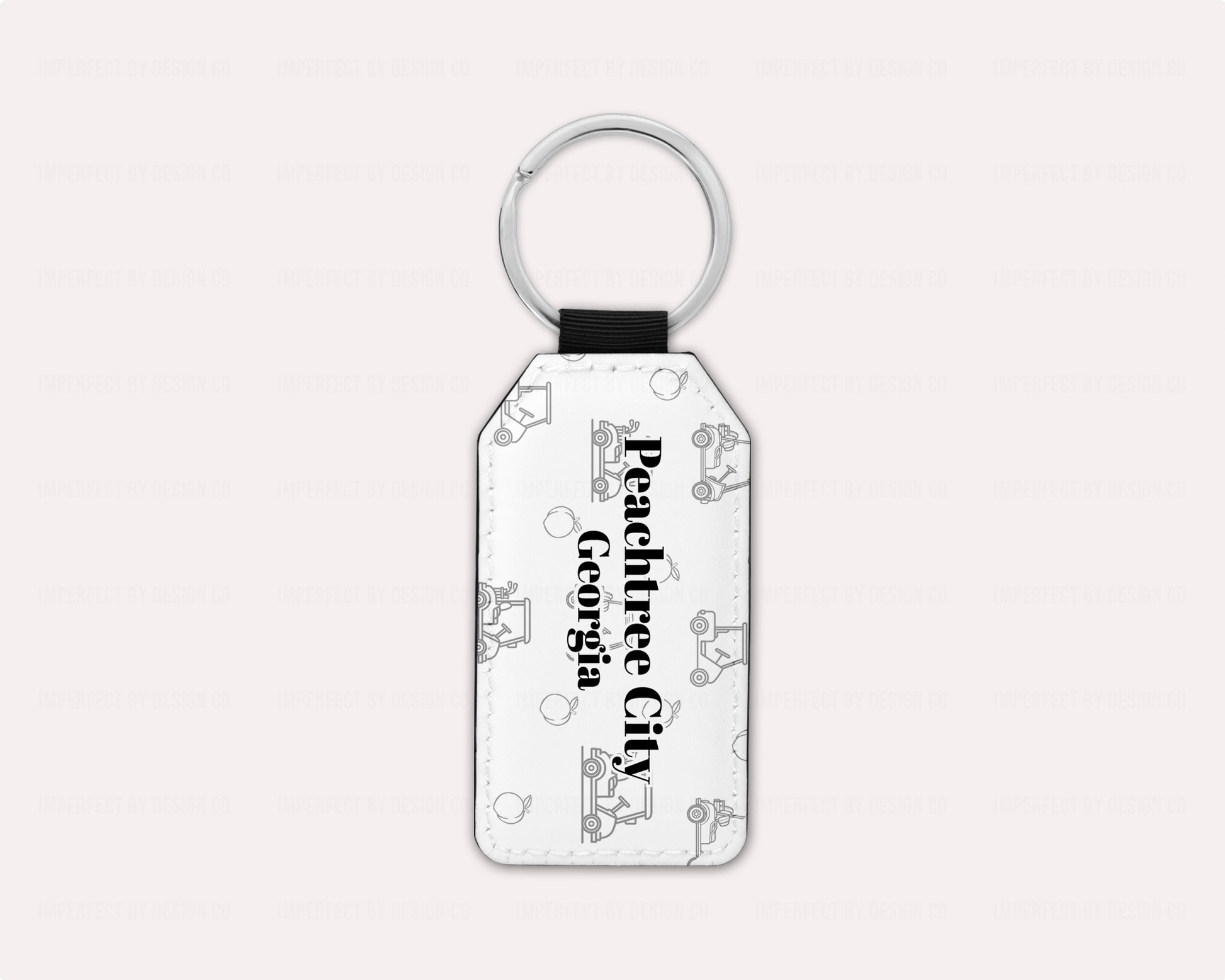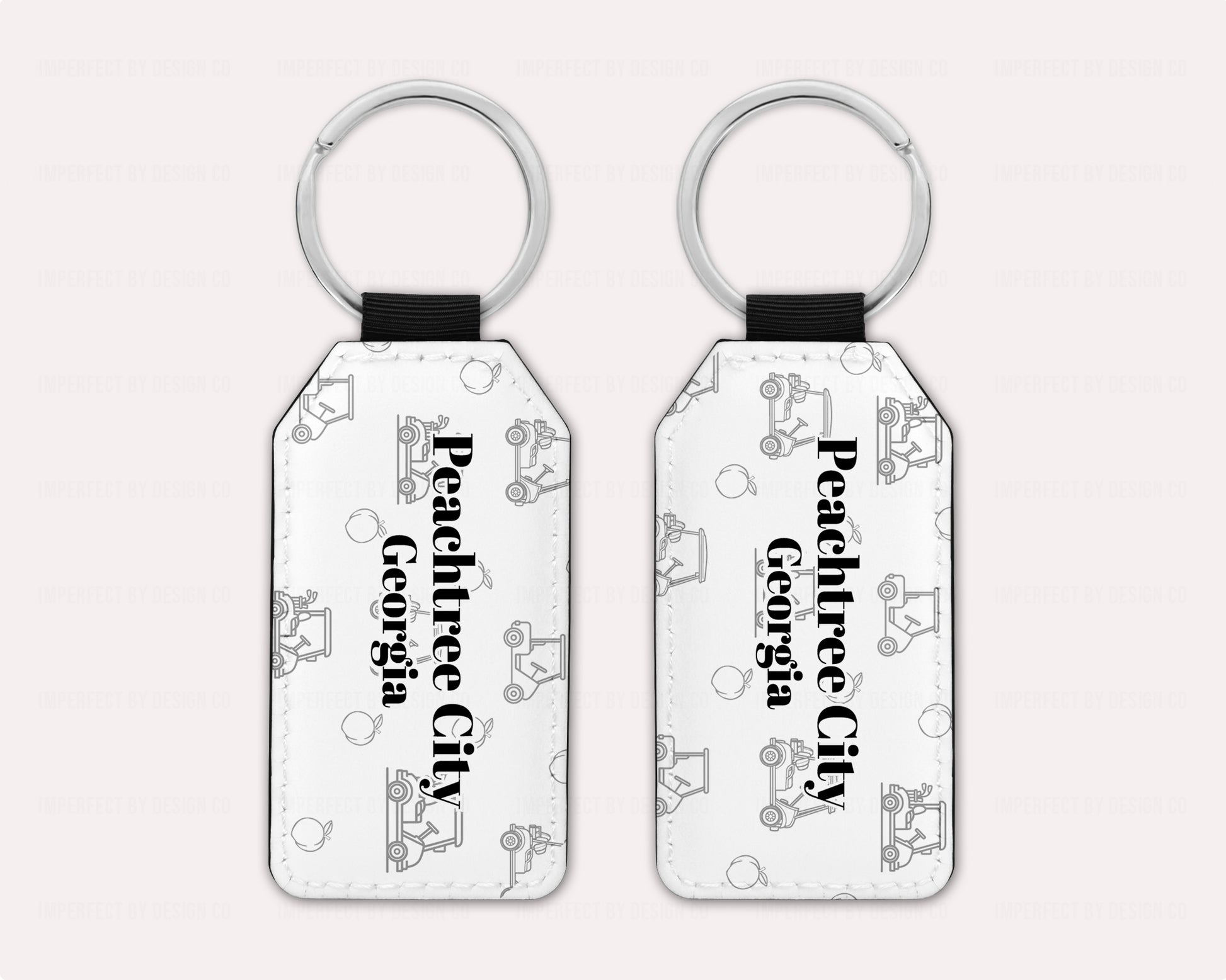 In summary, this faux leather keychain is a stylish and practical accessory that showcases your love for Peachtree City Georgia. With its beautiful design and high-quality materials, it's a must-have item for anyone who wants to add a touch of elegance and charm to their keys. Get yours today and show off your love for this iconic city!